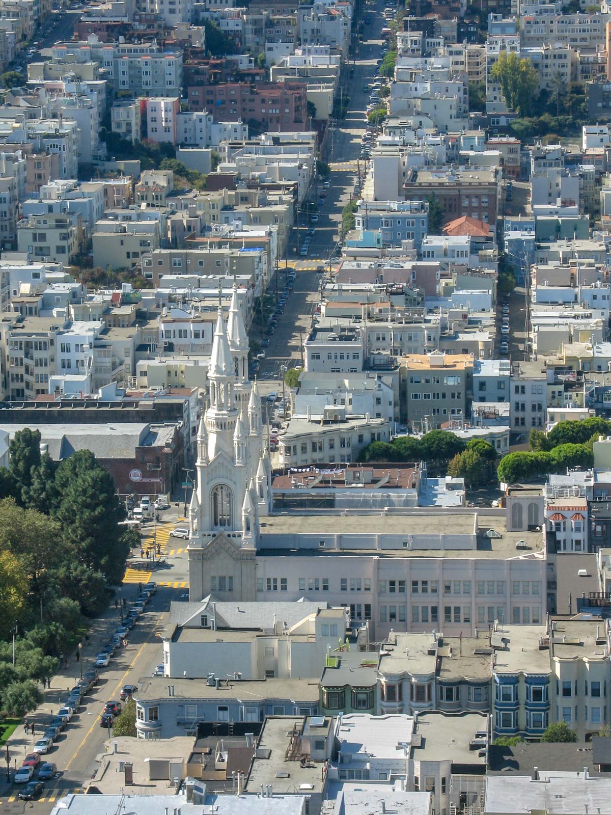 Einzige Ausnahme: ein kleiner Teil der Lombard Street. Blumengeschmückt geht es einen besonders steilen Hang in Serpentinen hinunter (Einbahnstraße). Mittlerweile hat sich dieser Teil zu einer ganz besonderen Touristen Attraktion entwickelt, und es herrscht quasi den ganzen Tag über Rushhour, weil jeder mal mit seinem Auto die Straße hinunterfahren will. Dazu kommen noch unzählige Touristen, die sich entweder zu Fuß oder mit der Cable Car vom nahe gelegenen Fisherman Warf aufgemacht haben. Ich glaube das haben sich die Anwohner in den schicken und vermutlich sehr teuren Häuschen so auch nicht träumen lassen. Ich kann mir wahrlich was besseres vorstellen als täglich Unmengen von Touristen sozusagen in meinem Vorgarten zu haben.